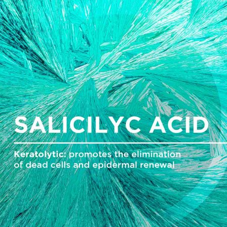 - Maradványtünetekkel szemben: a szalicilsav a bőrfelszínen fejti ki megújító hatását, míg az acetil-glükózamin (biomimetikus cukorszármazék, amely természetesen jelen van a bőrben) belülről segíti elő a sejtmegújulást.